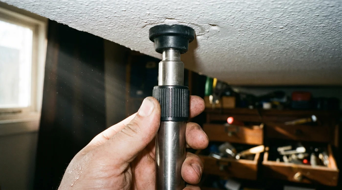 5. La spinta della molla può rompere il mio controsoffitto in cartongesso? È un rischio reale se il materiale è sottile. Previenilo inserendo una tavoletta di legno piatta e pulita (circa 20×20 cm) tra il soffitto e il tirante per distribuire dolcemente il carico.